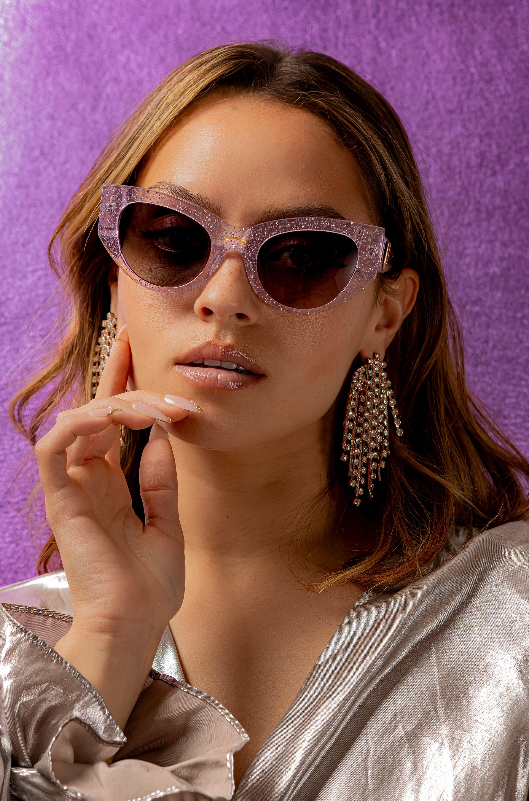 Lilove ~ Lilac glitter acetate sunglasses in an almond-shape
