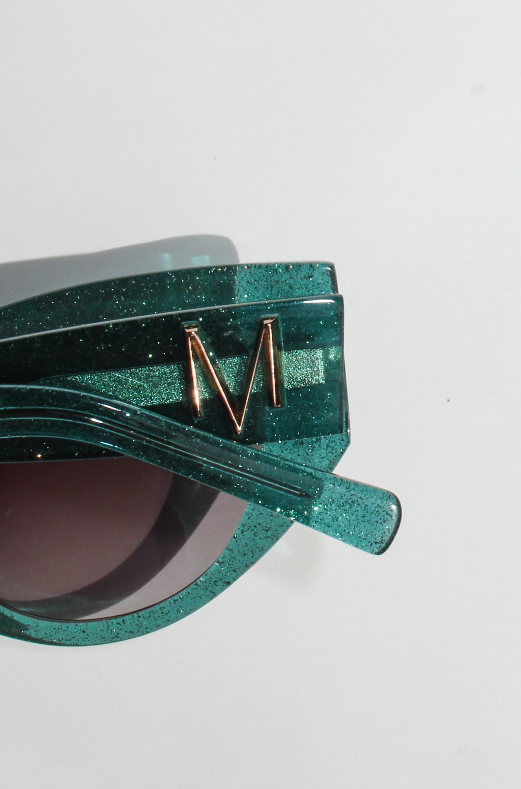 Paradise ~ Oversized oval sunglasses in emerald marble acetate with green crystal detailing