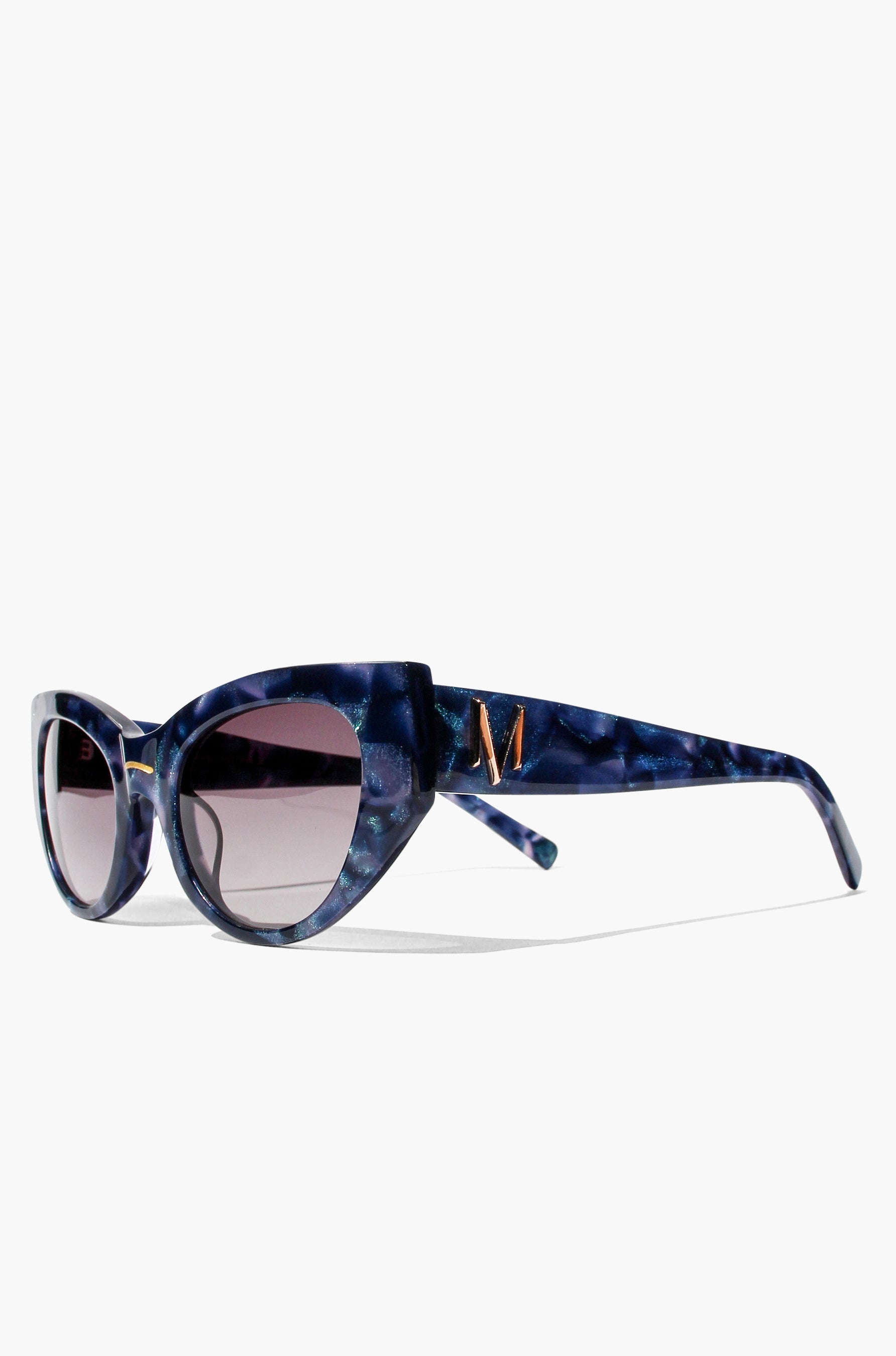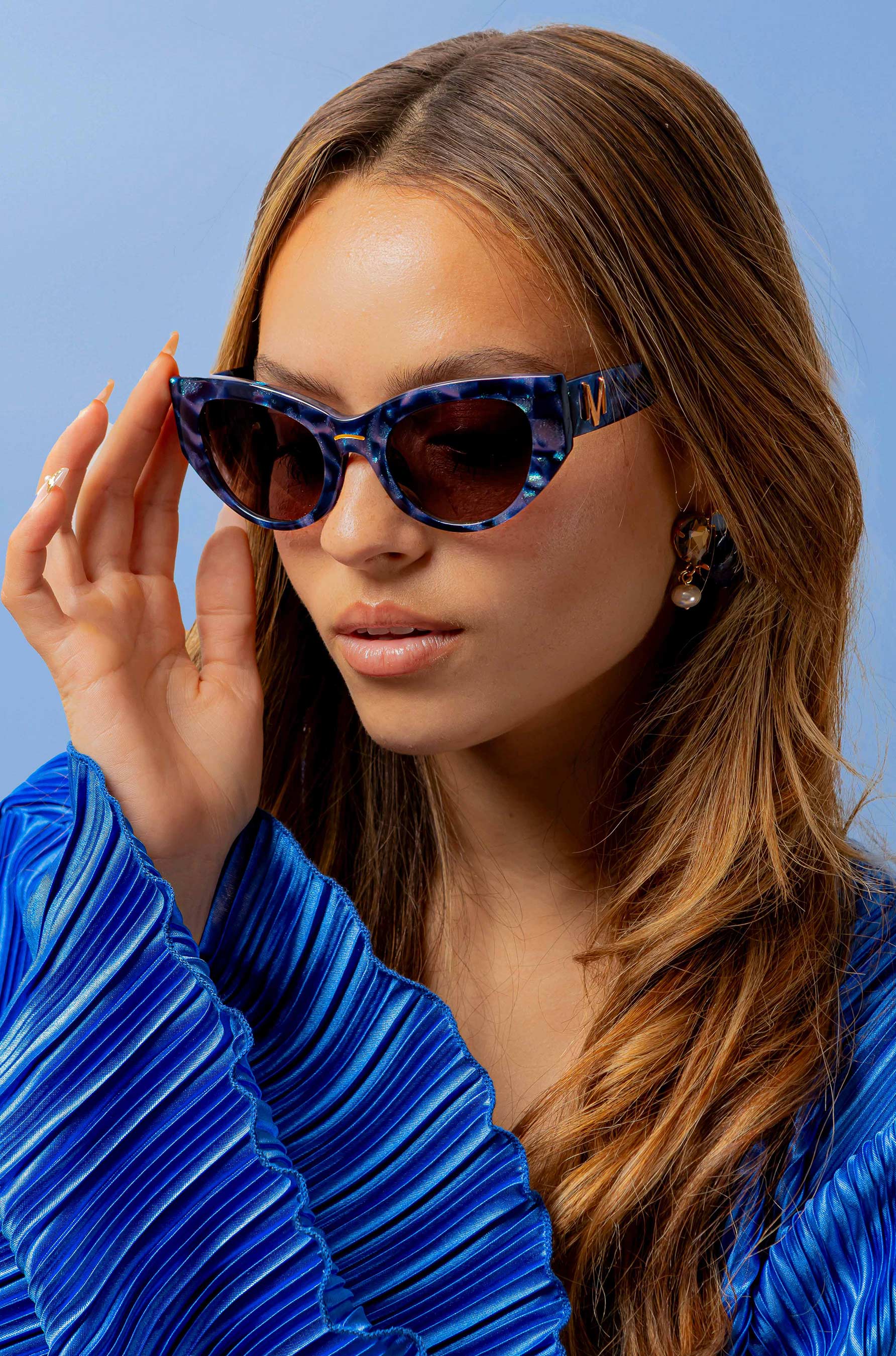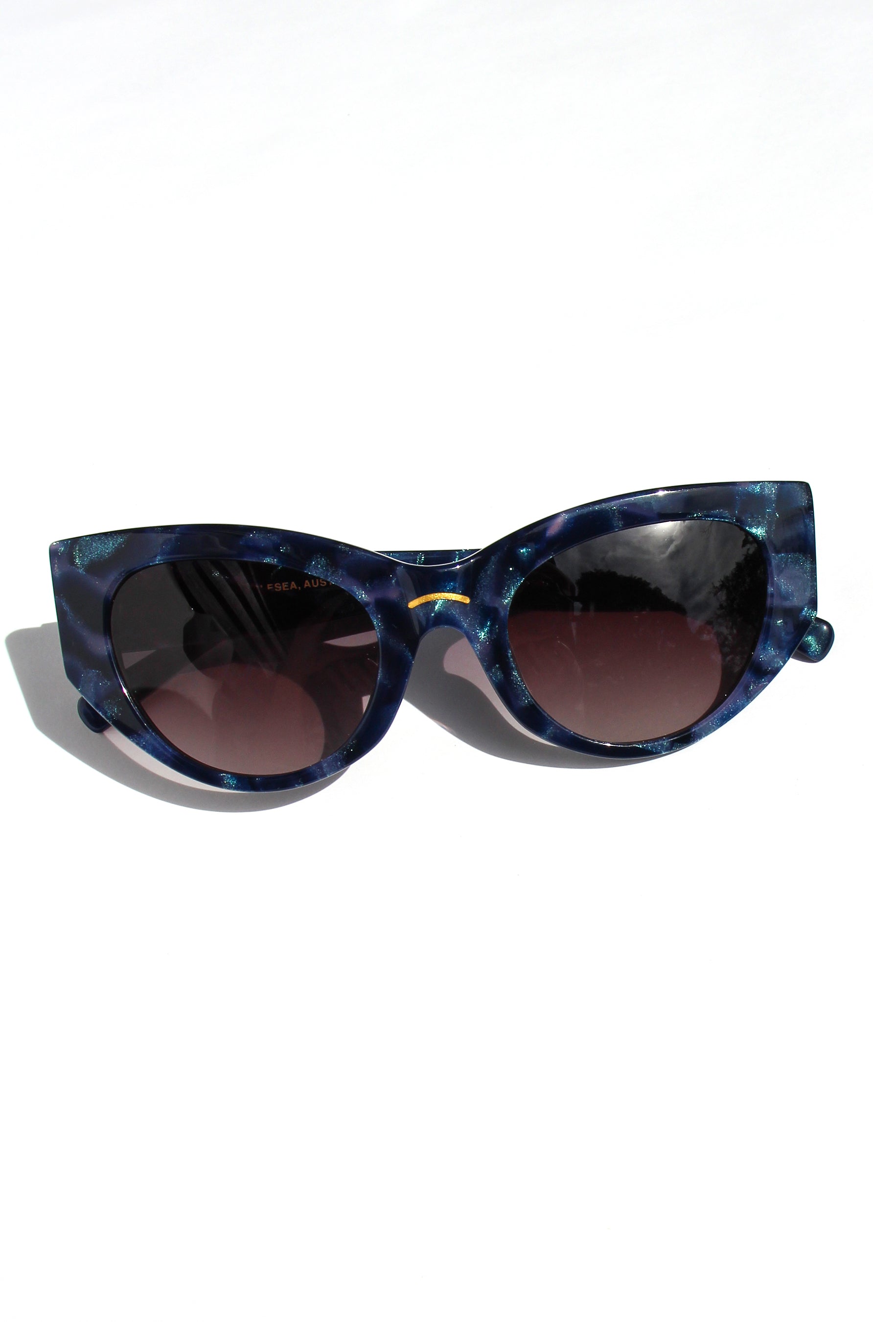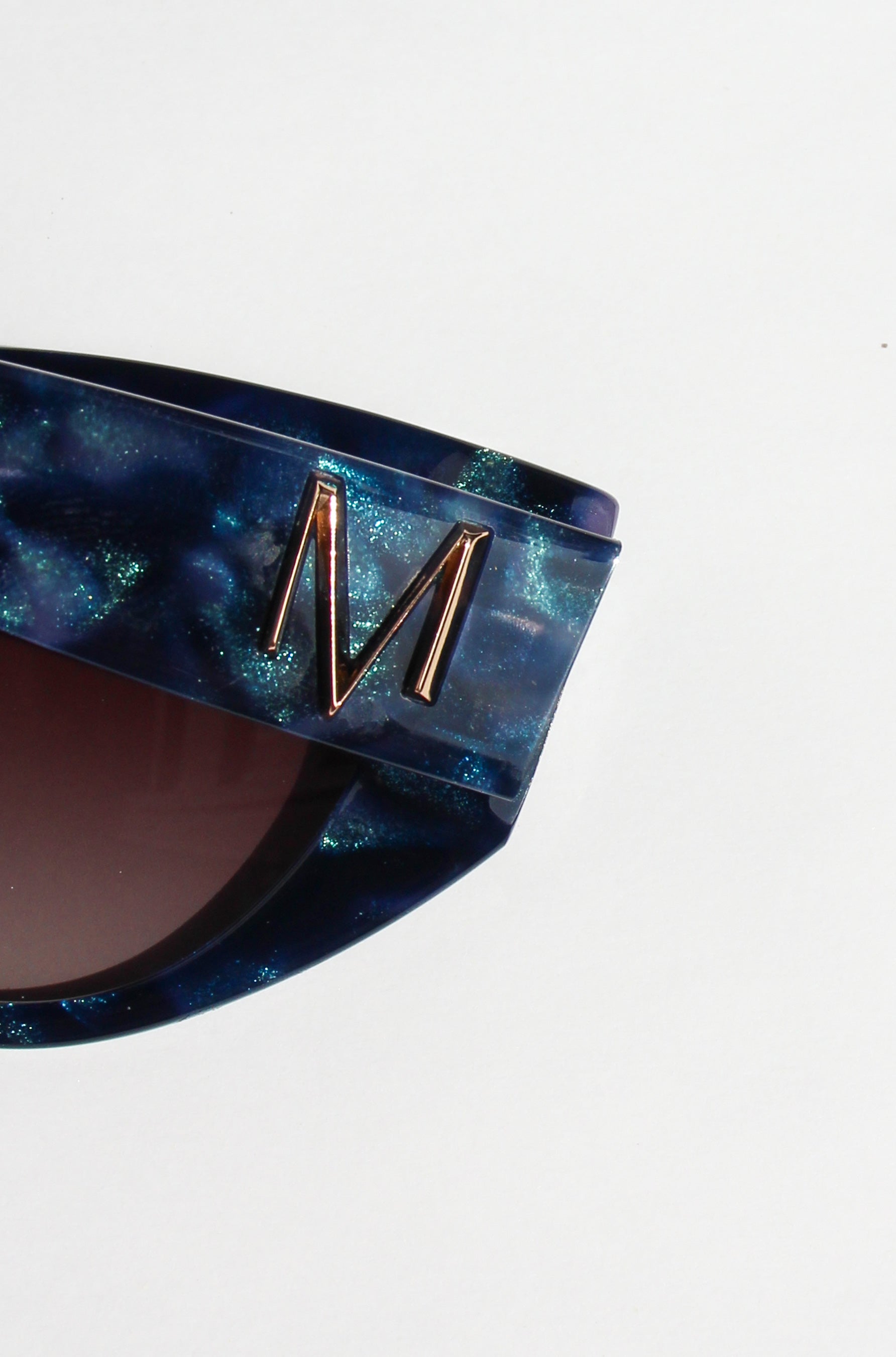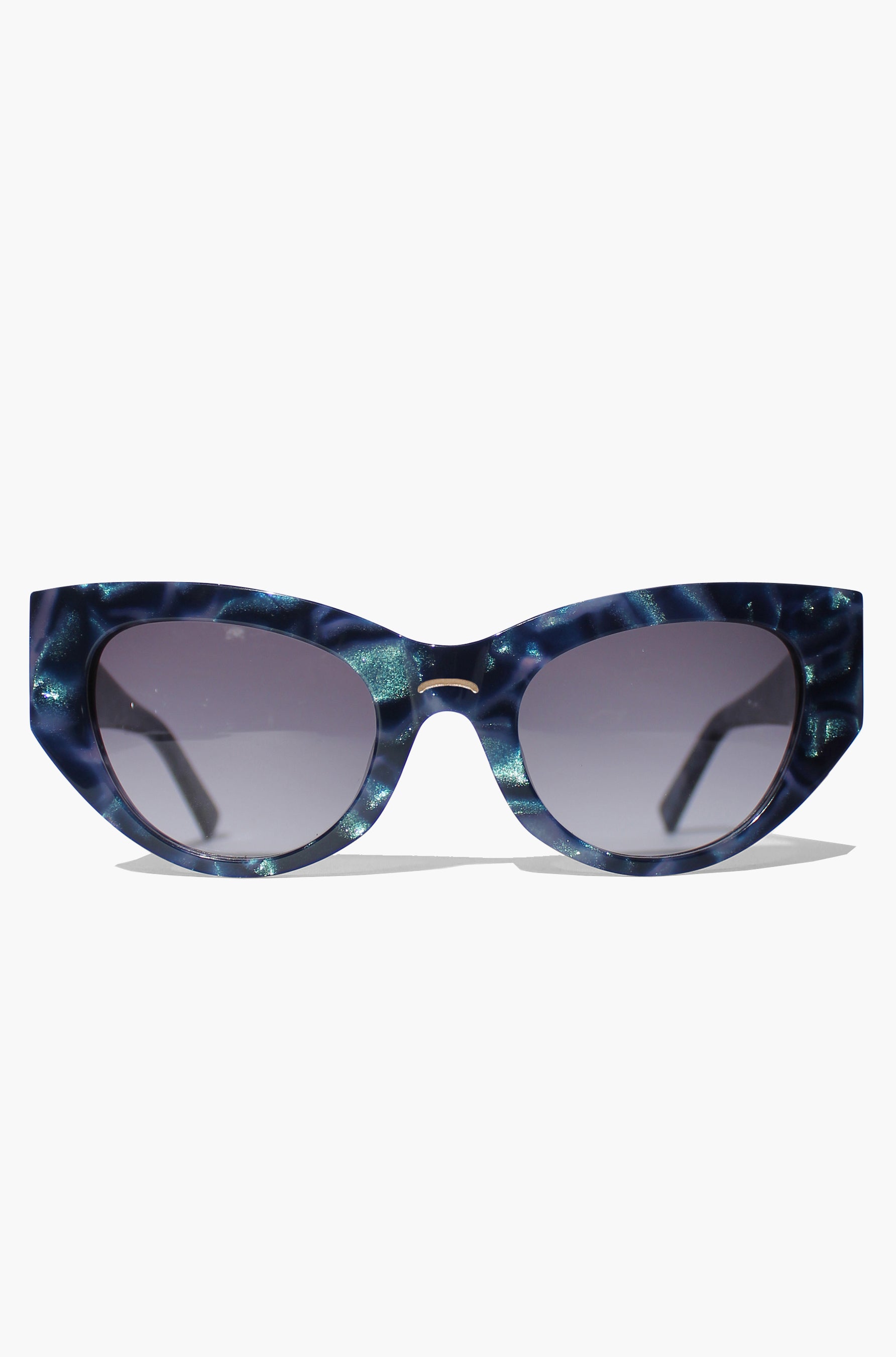 Saphira ~ Almond-shaped sunglasses in marbled blue shimmer acetate