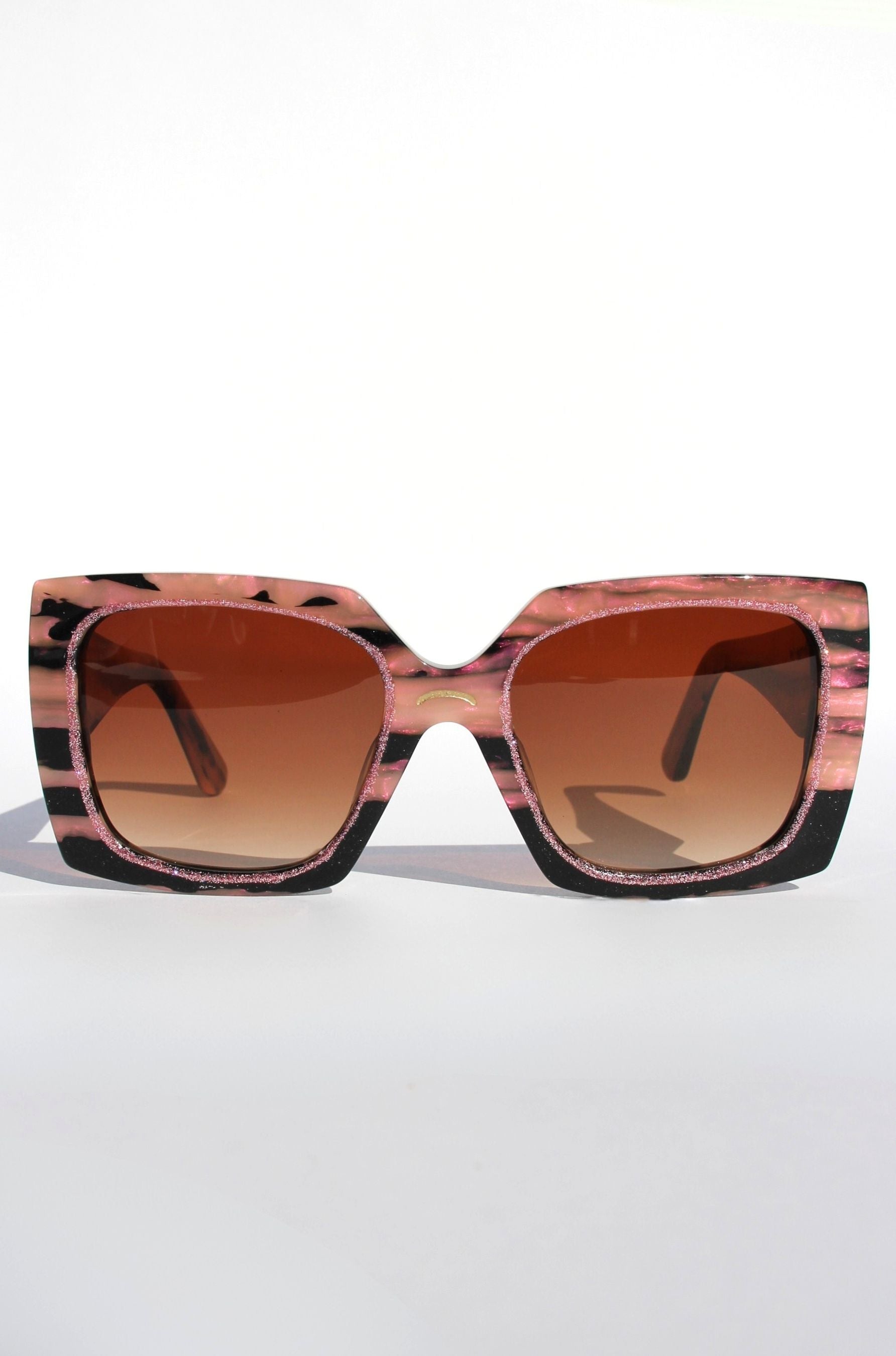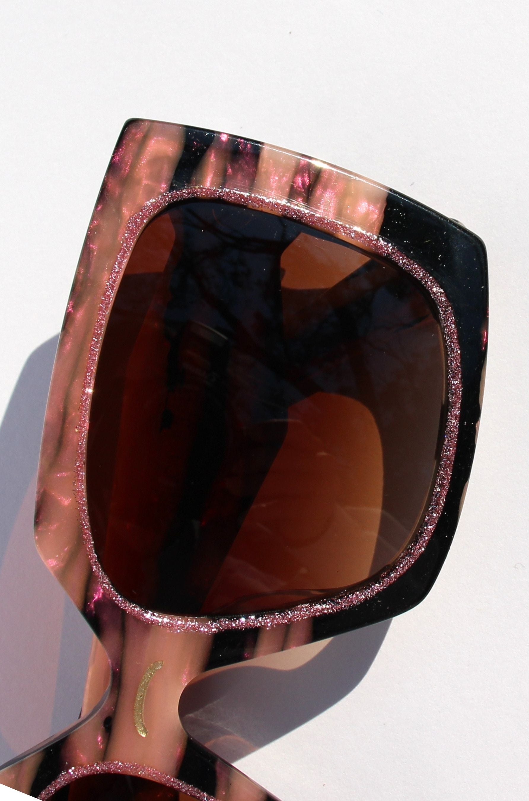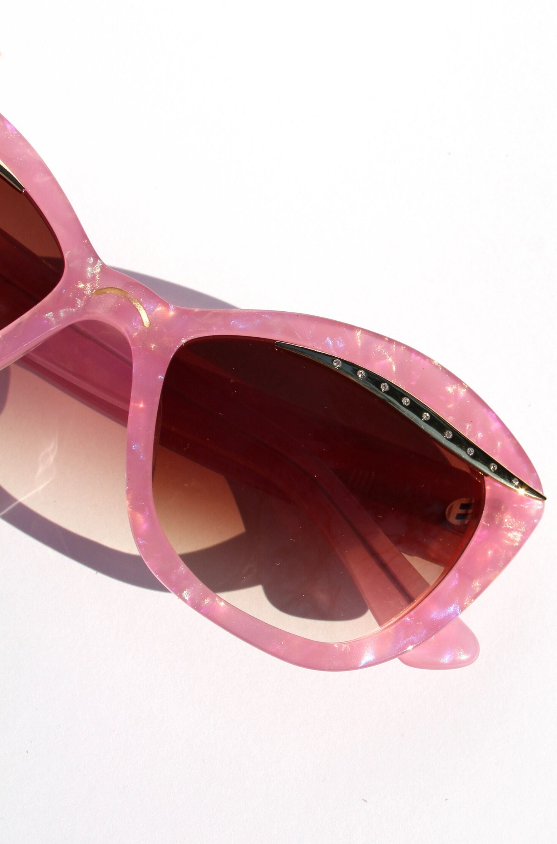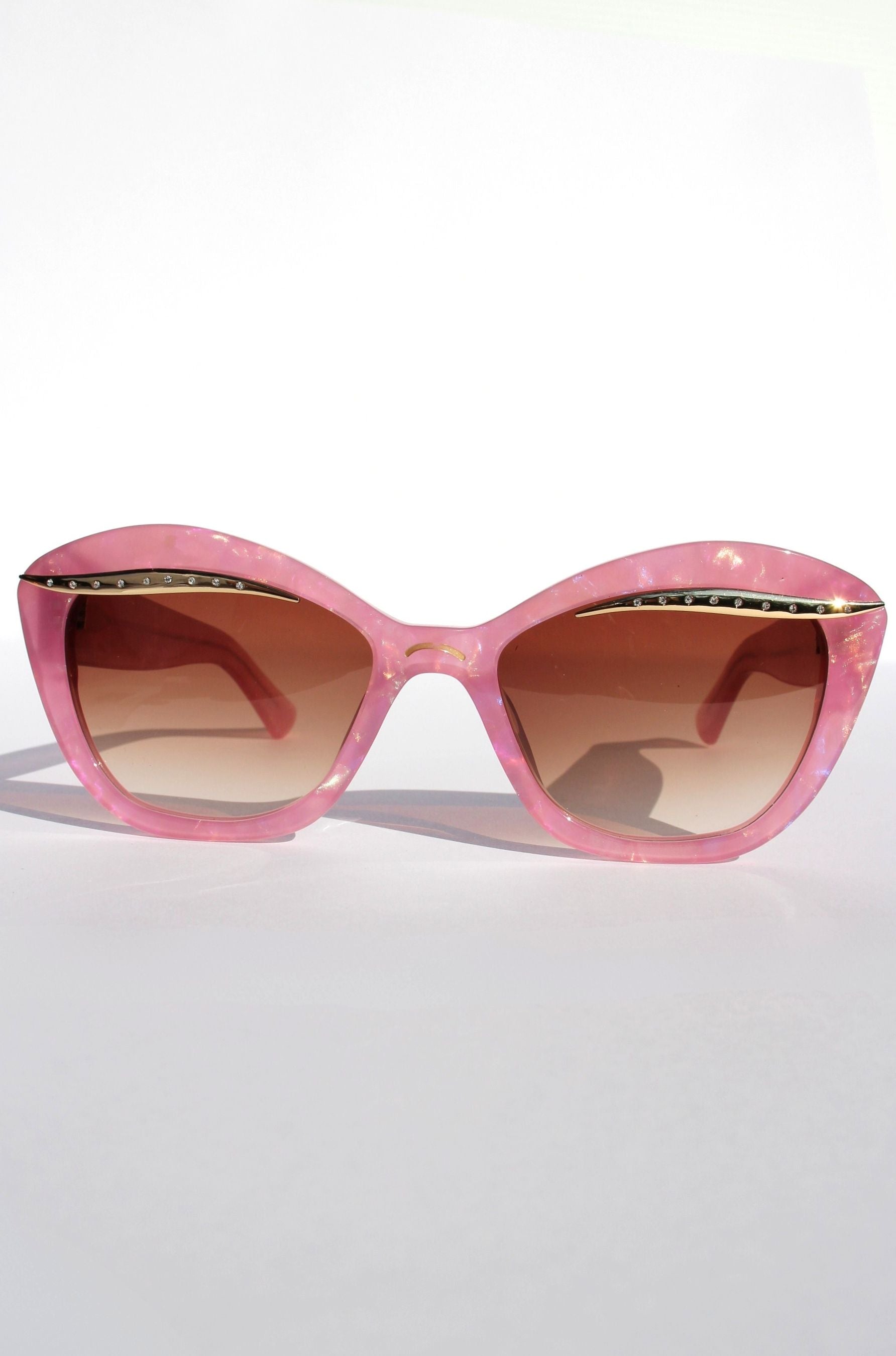Colorful cat-eye sunglasses with gradient brown lenses on a white background.